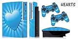 Protective skins for Playstation 3 System Console, PS3 Controller skin included - HEARTS BLUE